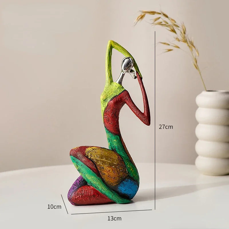 Une figure stylisée en résine qui semble danser dans un tourbillon de couleurs vives, symbolisant la liberté et la créativité sans limites.