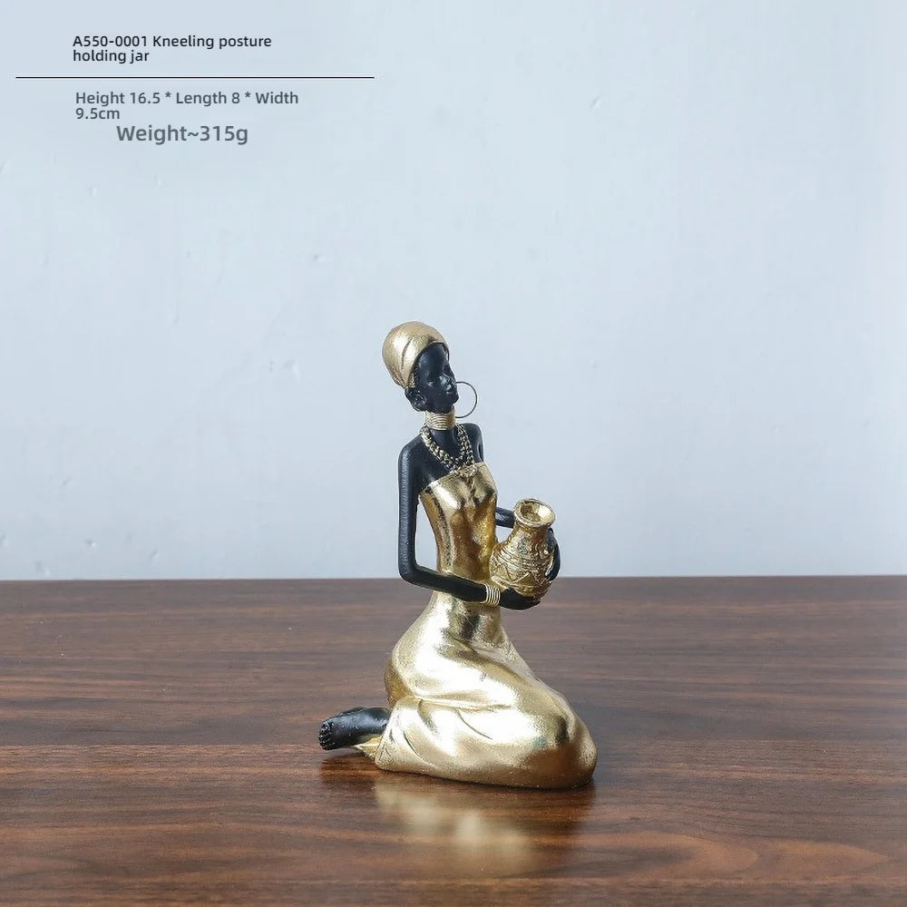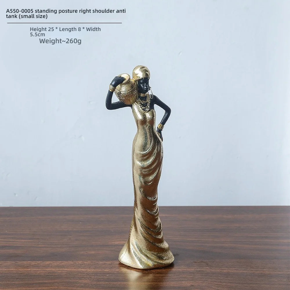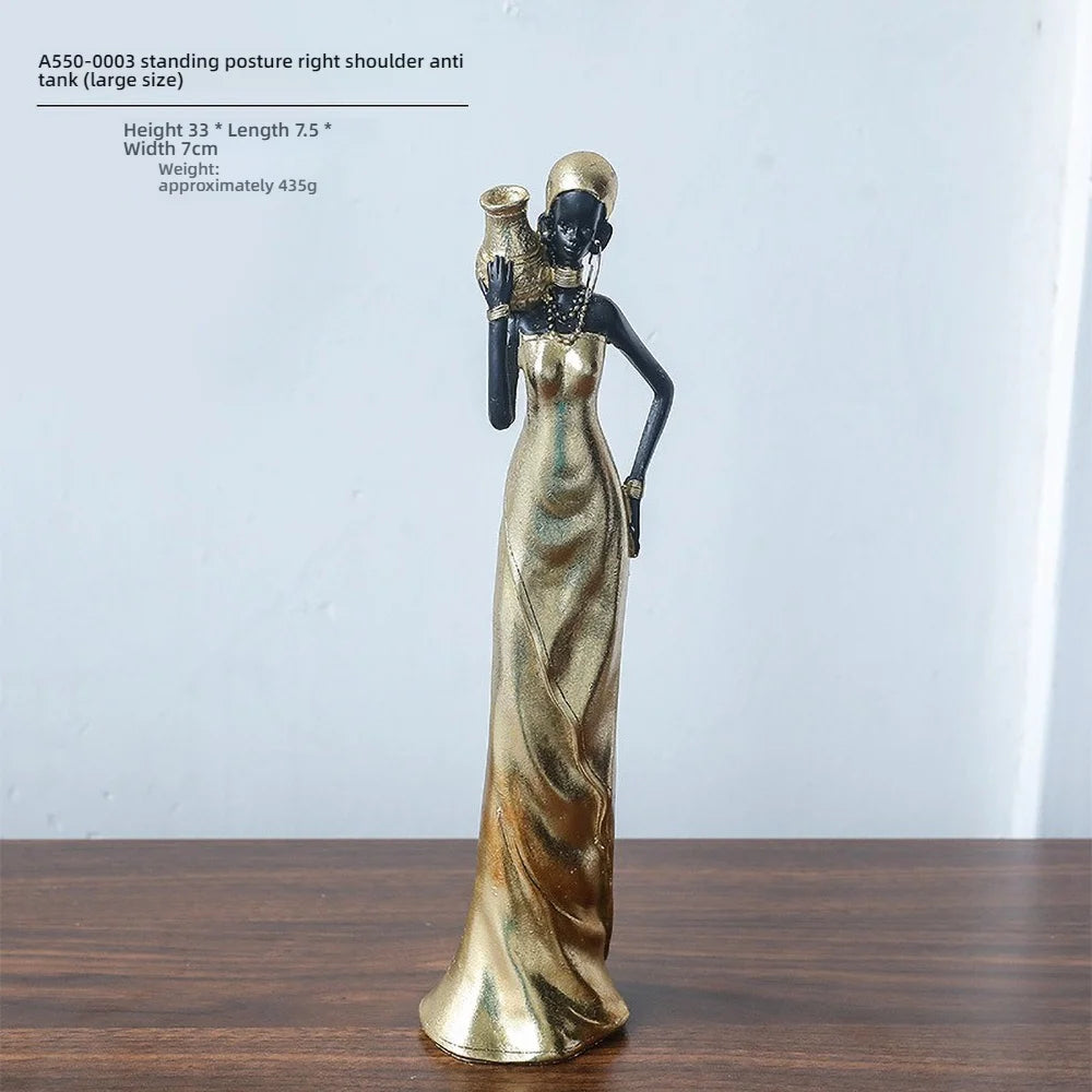 Son bras posé veille sur les trésors du quotidien. Sa robe dorée respire la chaleur des silences. Un écrin sculpté pour les beautés qui gardent en douceur.