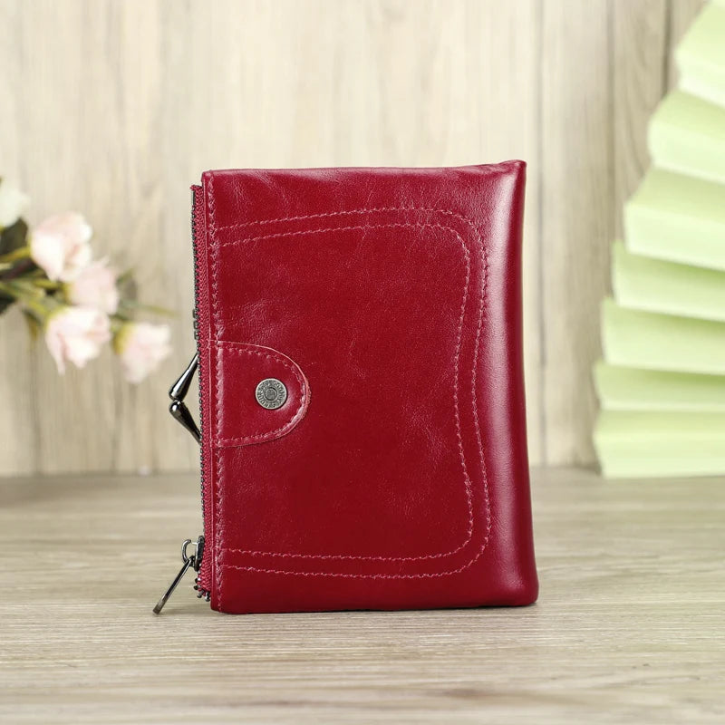 Ce portefeuille en cuir rouge audacieux est parfait pour ceux qui aiment se démarquer. Il comprend une poche à monnaie pratique et un compartiment à billets spacieux.