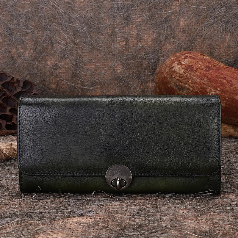 Ce portefeuille en cuir vert, avec son design épuré et son bouton-pression élégant, est une ode à la simplicité. Chaque détail est une invitation à découvrir un monde de raffinement discret.