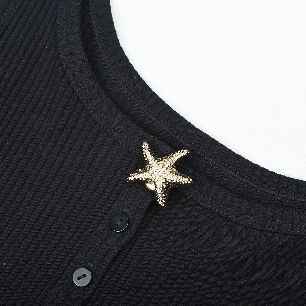 Ce bijou doré danse entre lumière et matière. Il évoque les vagues qui s’éteignent sur le sable chaud. Un détail précieux pour les tenues qui aiment le mouvement.