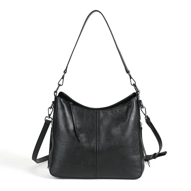 Plongez dans l’élégance de la nuit avec ce sac à main et bandoulière en cuir fendu noir, où chaque pli murmure des secrets intemporels. Fabriqué en cuir véritable, ce sac allie sophistication et mystère.