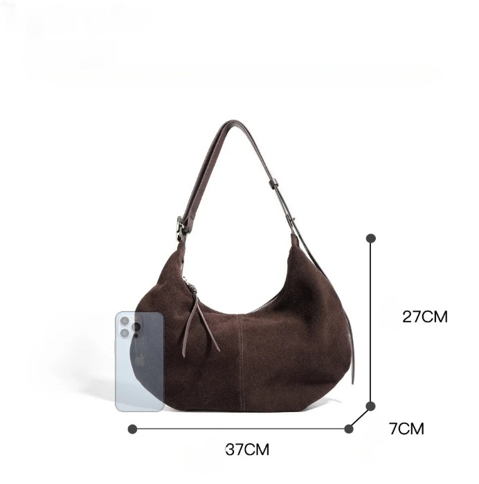 Ce sac joue sur les paradoxes : une teinte sombre et noble, associée à une silhouette douce et féminine. À la main, il affirme son caractère. En bandoulière, il devient fluide et complice de tes mouvements.