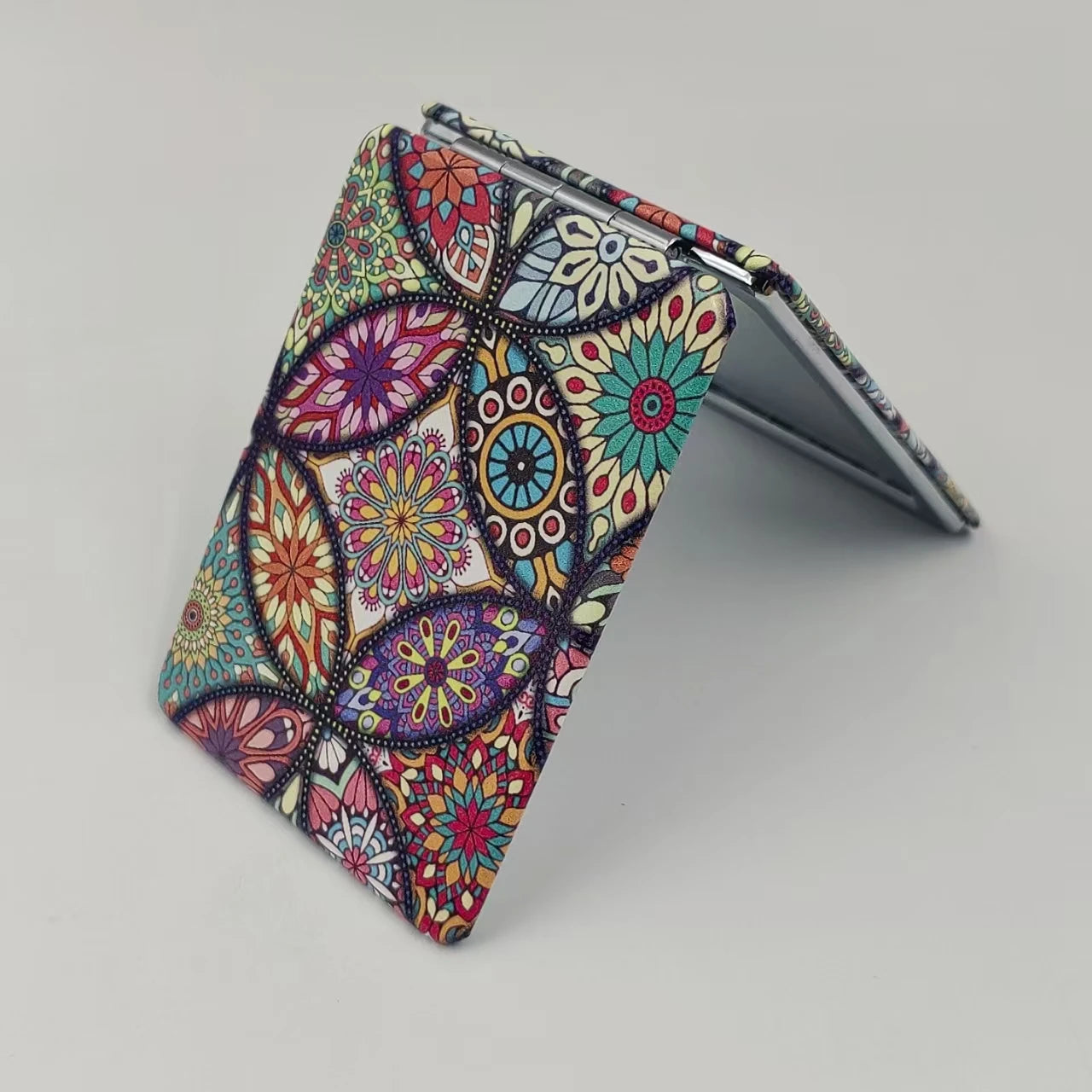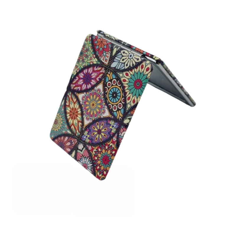 Une mosaïque de lumière s'ouvre dans la main. Ses motifs multicolores murmurent mille aventures. Un accessoire bohème pour les visages errants.