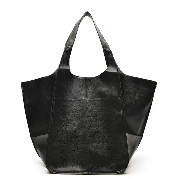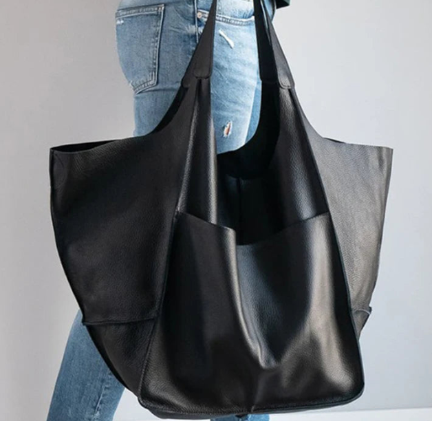 Ce sac en cuir lisse noir séduit par sa sobriété et sa puissance visuelle. Sa forme ample et son design épuré en font un indispensable du quotidien, entre élégance et fonctionnalité.