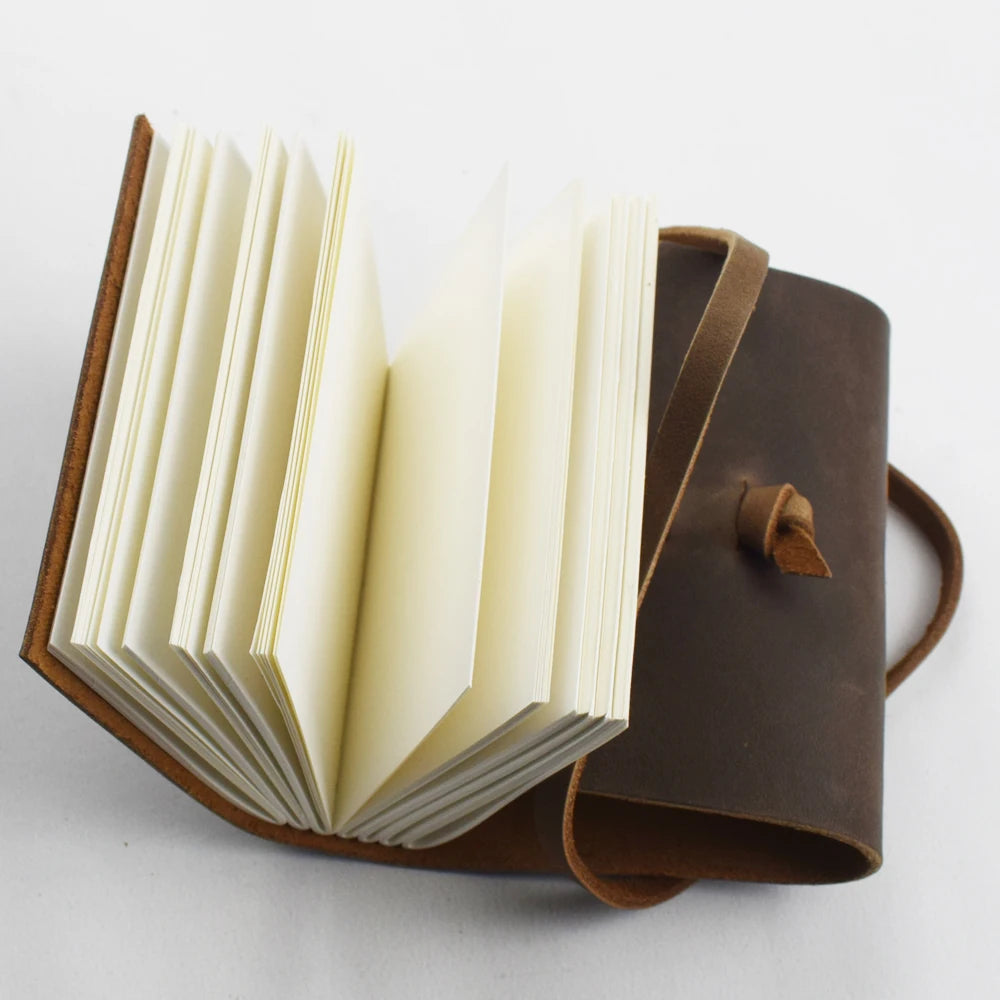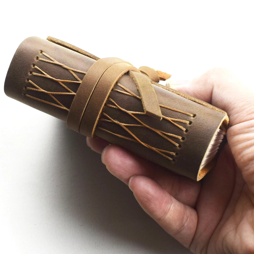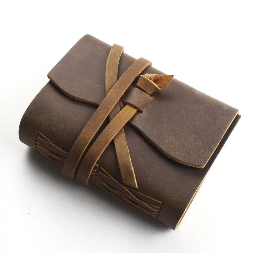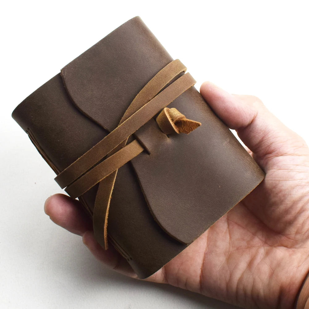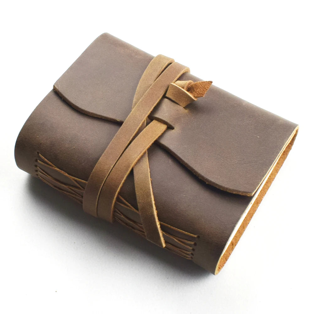 Ce cuir brun semble forgé dans une mémoire ancienne. Ses coutures visibles racontent les failles et les forces. Un carnet brut pour les écrivains de l’intime.