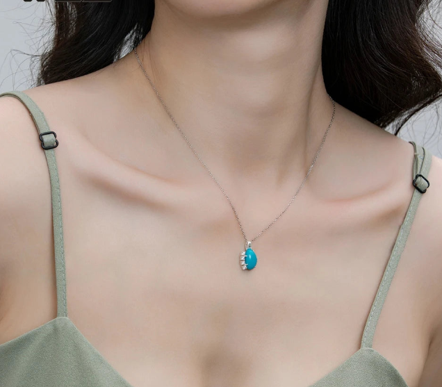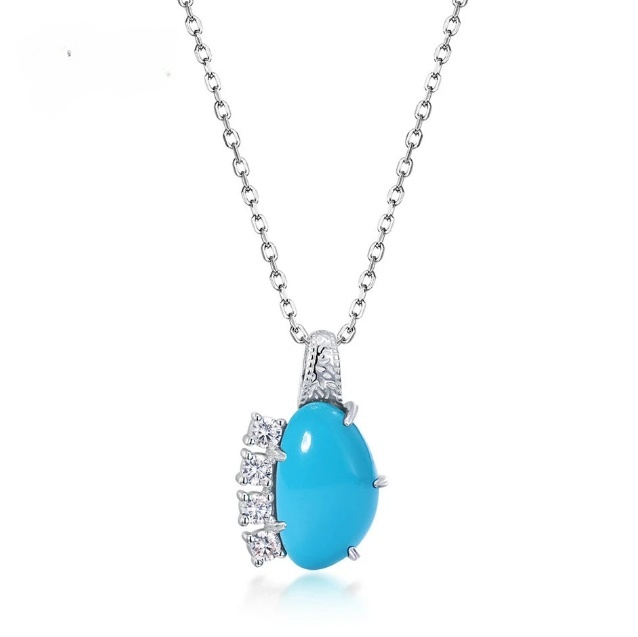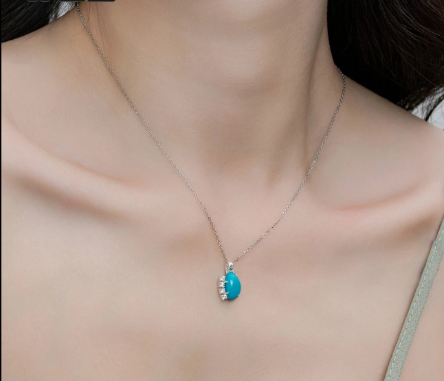 La turquoise, symbole de protection et de sagesse, est mise en valeur par un sertissage en argent sterling qui semble avoir été sculpté par les vagues elles-mêmes. Les détails minutieux et les petites pierres ajoutent une dimension mystique à ce bijou .